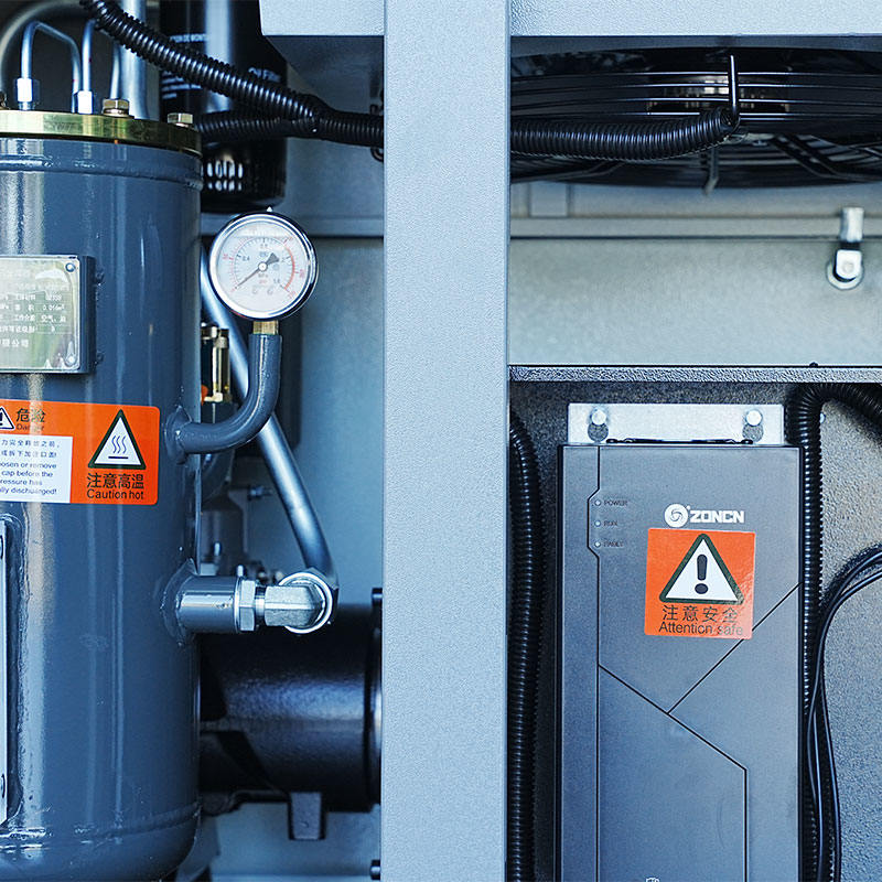 Dizajn jednostupanjskog kompresora s dva vijka s mikro uljem od 20 KS podržava fleksibilnost u konfiguraciji. Zhejiang Haidebao Industrial Technology Co., Ltd. proizvodi kompresor sa strukturnom i električnom arhitekturom koja se prilagođava postavkama fiksne i varijabilne frekvencije. Sinkroni motor s trajnim magnetom pruža dosljednu izvedbu u oba načina rada zbog svojih inherentnih karakteristika stabilnog izlaznog momenta i niskog porasta temperature. Dodatno, izravna veza 1:1 između motora i vijčanog agregata omogućuje sustavu učinkovit prijelaz između verzija s fiksnom i promjenjivom frekvencijom tijekom proizvodnje ili instalacije. Putovi kruga ulja, rashladni sustavi dizajnirani za pouzdanu disipaciju topline i postavka podmazivanja mikrouljem ostaju učinkoviti bez obzira na odabir frekvencije. To korisnicima omogućuje instaliranje kompresora u okruženjima u kojima izbor frekvencije ovisi o operativnom planiranju, energetskom proračunu ili obrascima tijeka rada.