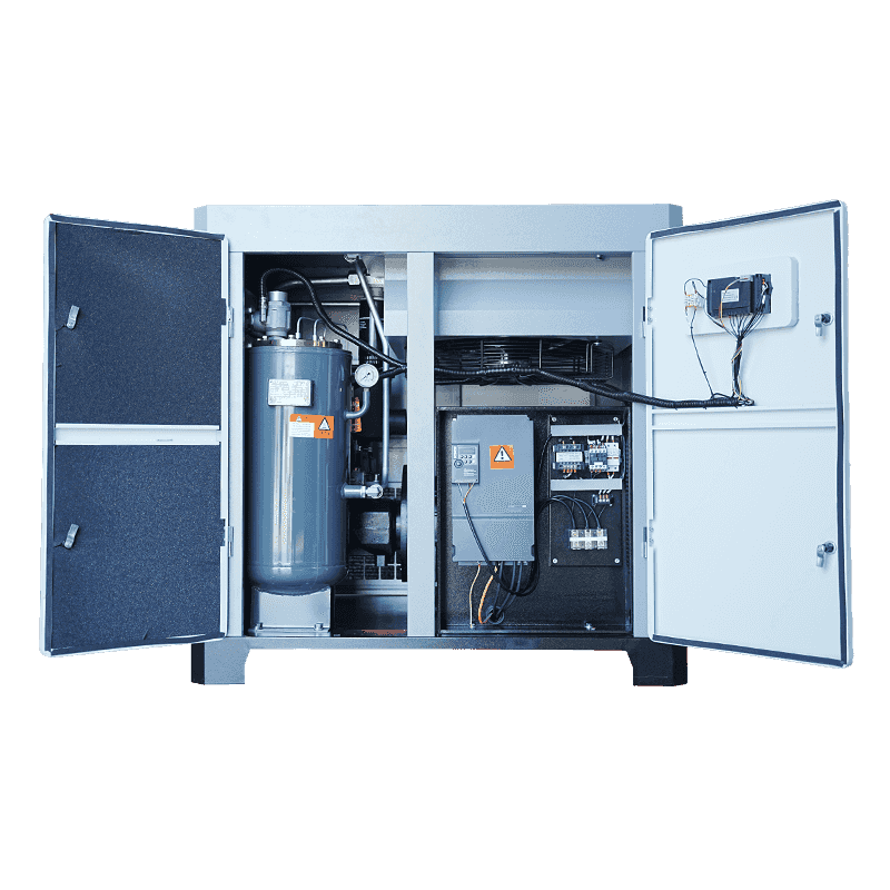 Kombinacija dvostruke vijčane kompresije, podmazivanja mikro uljem i tehnologije sinkronog motora s trajnim magnetom omogućuje jednostupanjskom dvostupanjskom kompresoru s mikro uljem od 50 KS da zadrži energetski učinkovit profil tijekom dugotrajnog rada. Njegov dizajn sustava usredotočen je na stabilnost, smanjeno mehaničko trošenje i optimizirano upravljanje protokom zraka. Dok stvarne uštede energije variraju ovisno o radnom okruženju i radnom opterećenju, struktura kompresora omogućuje industrijama upravljanje proizvodnjom komprimiranog zraka s većom učinkovitošću i predvidljivošću.